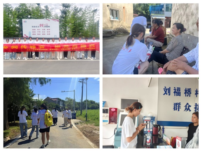 团队深入刘福桥村、柏垫村、大陆村、小陆村、梅村等十多个村子开展“普通话推广”“传承非遗记忆”等特色活动,深入农户广泛收集村民的宝贵意见和建议,回收有效问卷311份。队员们深度考察文旅品牌建设与宣介、涉农项目发展等,实地调研茅田山、雨燕谷、君泰山庄、刘福桥范仲淹纪念馆等文旅项目,与文旅企业深入交流探讨,推动生态人文优势转化为经济发展优势。