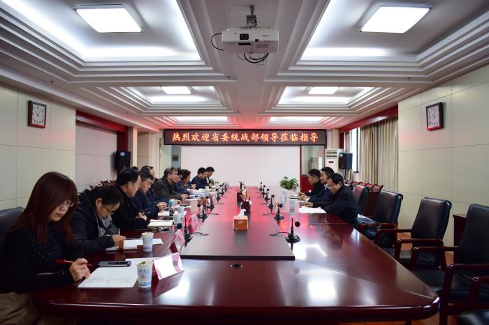 1月9日上午,省委统战部副部长王琦率党外知识分子工作处处长王成南、省欧美同学会(留学人员联谊会)秘书长许松亭等一行来校,调研党外知识分子和留学人员统战工作。校党委书记王其东、校长吴春梅、副校长陈秀热情会见来宾。校党委委员、统战部部长刘樟树,党外知识分子、留学人员代表及有关处室负责人参加座谈会。