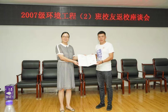 10月4日,生物食品与环境学院2007级二十余名环境工程专业校友返校,参加捐赠“校友纪念树”揭牌仪式暨座谈会等活动。中德基地基金办主任刘金平、校党政办公室副主任张伟颀、环境工程系部分教师代表参加活动,活动由生物食品与环境学院党委副书记笪春年主持。