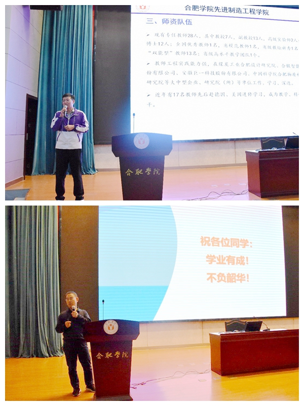 先进制造工程学院戴淮初、李尚荣向新生详细介绍了机械设计制造及其自动化专业、机械电子工程专业发展概况、发展前景和人才培养方案等相关内容,2021级新生班主任胡正东、李伟与新生进行了亲切交流。