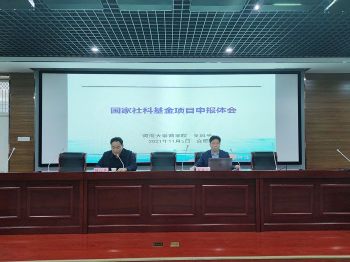 为扎实推进2022年国家社会科学基金项目申报工作,切实提升申报质量,我校于11月5日召开了国家社科基金项目申报辅导讲座,特邀河海大学教授吴凤平就国家社科基金申报进行经验分享。会议由校科研处、经济与管理学院联合组织。科研处、各文科学院负责人及2022年国家社科基金申报人员、新进青年教师参加会议,经济与管理学院院长陈江华主持。