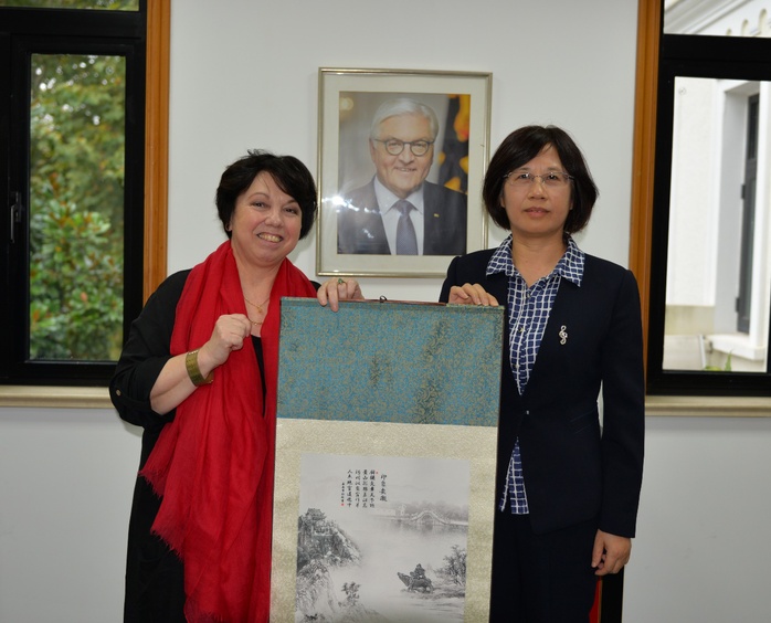 Wu Chunmei gab einen Überblick über die Zusammenarbeit der Universität Hefei mit deutschen Hochschulen und sagte: „Dieses Jahr ist das 40. Jubiläum der Universität Hefei, das 35. Jubiläum der deutsch-chinesischen Zusammenarbeit auf Ebene von Hochschulen und auch das fünfte Jubiläum des gemeinsamen Besuchs der Bundeskanzlerin Angela Merkel und des chinesischen Ministerpräsidenten Li Keqiang an der Universität Hefei, nach deren Anleitungsgedanken sich die Universität Hefei im Moment damit auseinandersetzt, eine erstklassige anwendungsorientierte Hochschule voranzutreiben und die Modelleinrichtung der Bildungskooperation zwischen China und Deutschland aufzubauen.“ Zum Schluss lud Wu Chunmei Generalkonsulin Dr. Christine D. Althauser zum 13. deutsch-chinesischen Symposium zur anwendungsorientierten Hochschulausbildung ein, das Anfang Dezember dieses Jahres in Hefei abgehalten wird.