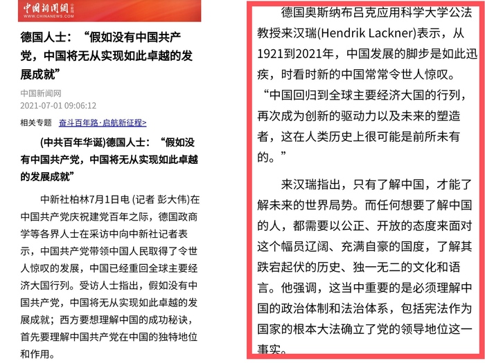 【党史学习教育】多家主流媒体报道我校德国专家祝贺中国共产党成立100周年