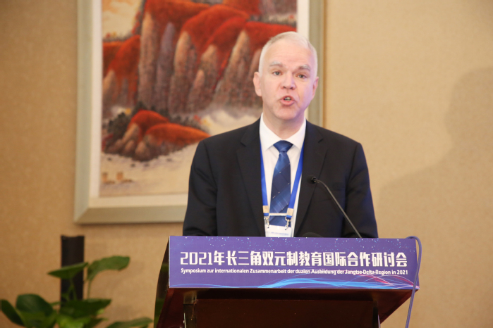 乔治·施泰德在题为《发展——合作——创新 过去、现在与未来》的报告中指出,高校是教育的核心部分,职业教育引领创新之路。中德合作由来已久,他希望能与更多高校建立良好的沟通合作关系,运用双元制教育模式,推动人才培养方案改革创新,使学生的综合能力和专业技能不断提高,让中国更多的职业院校受益。