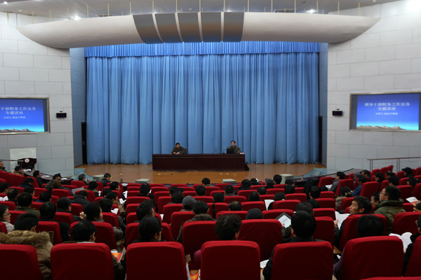 1月20日,为进一步提高各级领导干部的财务管理能力,我校于图书馆报告厅A厅举办财务工作实务培训。全校处级干部,平台负责人,科级干部参与此次培训。合肥工业大学梁金宁教授、安徽省审计厅审计一处处长杨仲林作了关于《领导干部财务工作实务》、《高校审计中发现的主要问题及改进建议》的专题讲座。