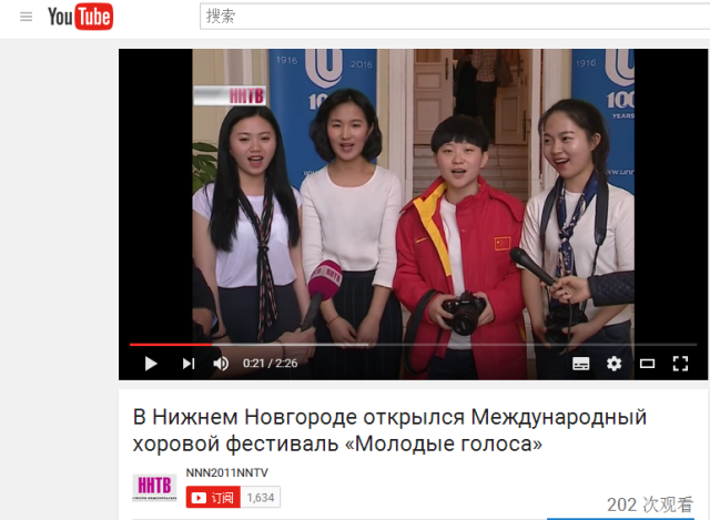 同时,下诺夫哥罗德国立大学电视台及当地的各类网络媒体,也都能看到对我校合唱团师生采访的影像资料。通过本次合唱艺术节,进一步巩固了我校对外合作成果,拓展了对外交流渠道,增强了学生跨文化交往能力。(团委  国际交流合作处)