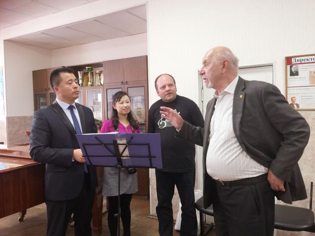 下诺夫哥罗德国立格林卡大学指挥系主任,功勋教授VIKTOR KURZHAVSKII在赛后专门来到休息室,向我校合唱团表示祝贺,坦言这是他看到的中国合唱团中印象最深、感觉最美的一场,并期待能去中国交流合作。