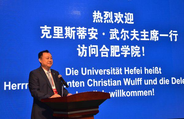 Präsident Wulff als Botschafter von der chinesischen und deutschen Freundschaft leistet einen großen Beitrag zur freundlichen Beziehung zwischen China und Deutschland und fördert die Zusammenarbeit und den Austausch zwischen der Provinz Anhui und Niedersachsen. Er beachtet darüber hinaus auch sehr den Aufbau und die Entwicklung der Universität Hefei. Während der Konferenz der Weltfertigungsindustrie 2018 besuchte Präsident Wulff noch einmal unsere Universität, was sowohl die tiefe Freundschaft zwischen der Provinz Anhui und Niedersachsen, als auch seine Fürsorgegegenüber unserer Universität zeigte.